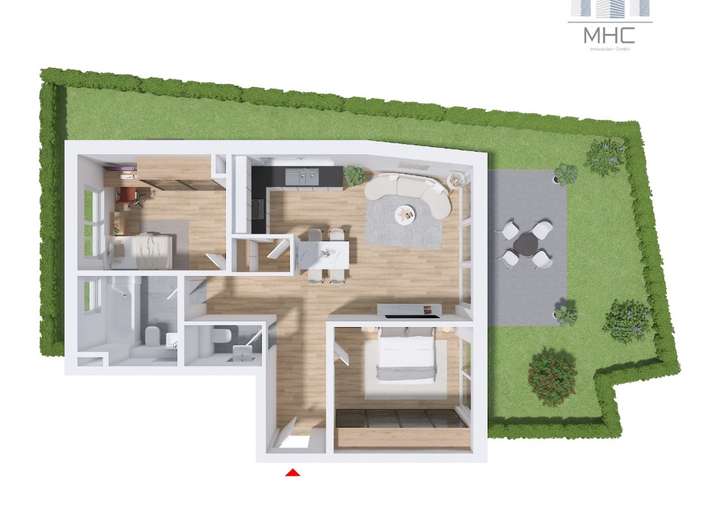 - Balkone, Terrassen sowie Gartenanteile je nach Wohnung