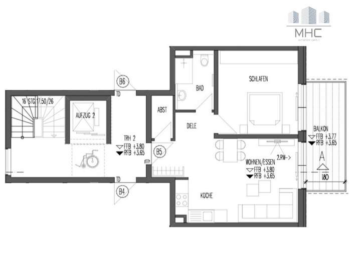 - Aufzüge in beiden Häusern, jeweils von der Tiefgarage bis ins Dachgeschoss