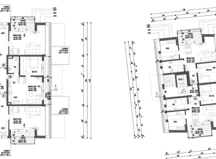 Projektdaten: Zwei Mehrfamilienhäuser mit insgesamt 15 Wohnungen in moderner Architektur