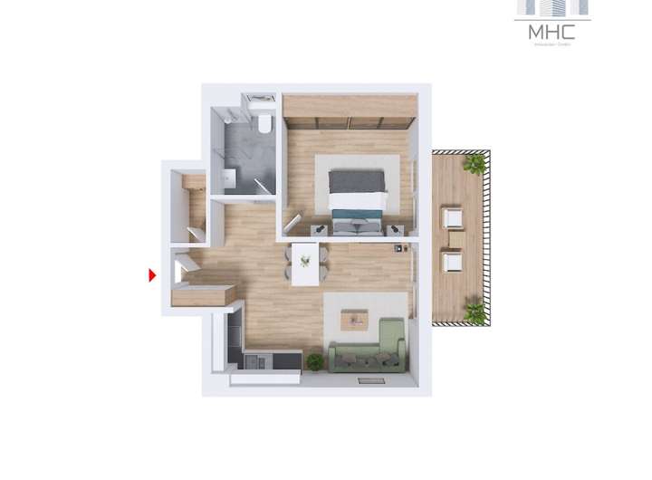 - Balkone, Terrassen sowie Gartenanteile je nach Wohnung