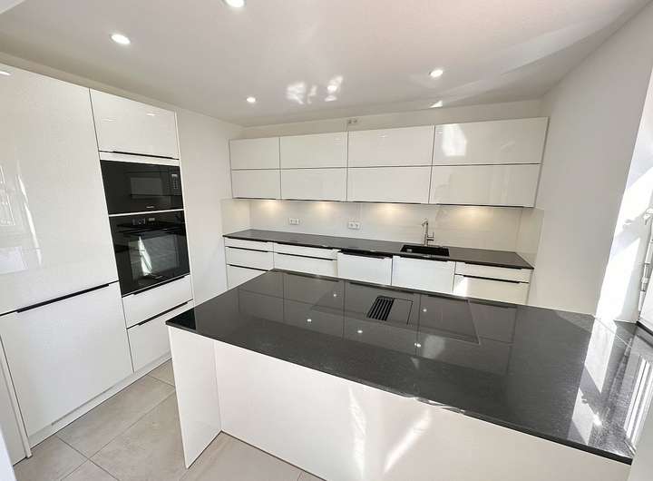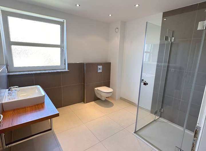 Die Innenausstattung der Wohnräume und Bäder wurde im Jahr 2020 komplett modernisiert. Hochwertige Feinsteinzeugfliesen im gesamten EG und DG, neue Design Heizungssystem im Wohnbereich, neue Türen und Zargen sowie eine neue hochwertige Einbauküche wurden hierbei installiert.