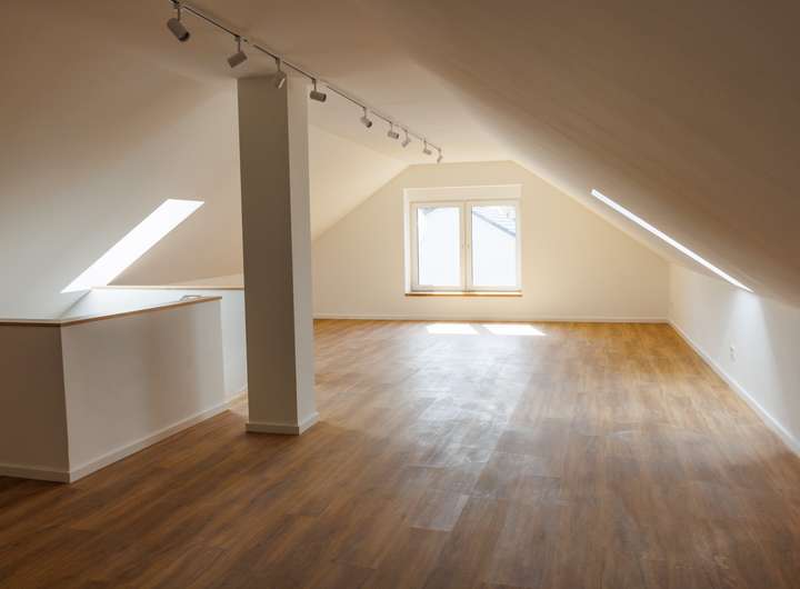 1 Zimmer. Vielfältige Nutzung denkbar. ca.70 qm. Bodentiefes Fenster. 2 Dachfenster. Holzboden Eiche.