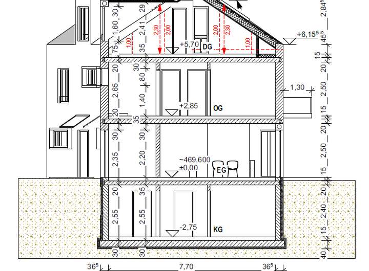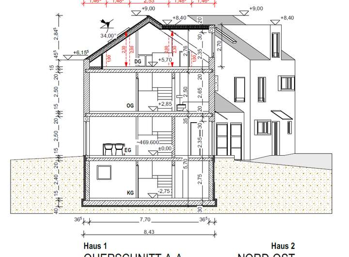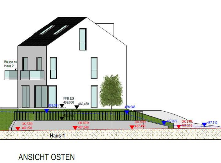 Das vordere Hausgrundstück wurde bereits verkauft – dort hat der Bau des Einfamilienhauses nach QNG-Standard bereits begonnen. Auf den Fotos der Anzeige können Sie dieses Objekt sehen. Für das hier angebotene Grundstück ist der Bau eines baugleichen Hauses mit ca. 153 m² Wohn- und Nutzfläche möglich. Die Planung überzeugt durch eine großzügige, durchdachte Raumaufteilung und modernes Wohnen.