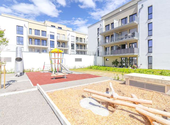 Aufzug, Duschbad, Einbauküche, Erstbezug, Gäste-WC, Hausmeister, Kabel-TV, Keller, Klingel mit Sprechanlage, Parkett, Stellplatz, Terrasse, Vollbad, Waschmaschinenanschluss, Wohnküche,