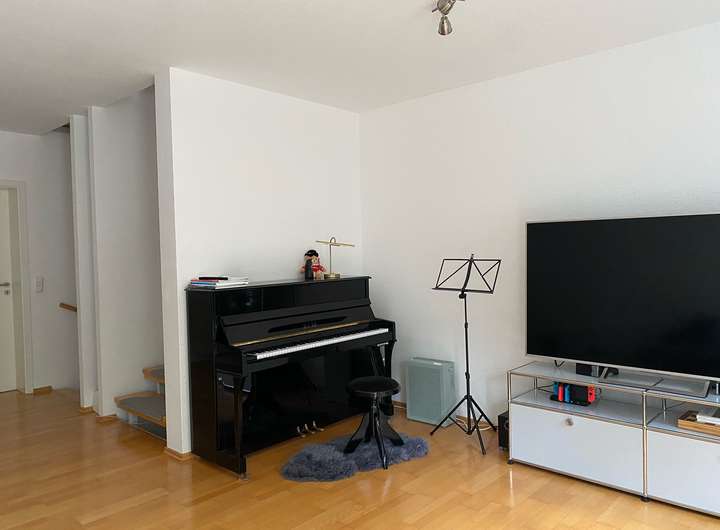 Das Haus verfügt über 4 Zimmer + großes Dachstudio, eine sonnige Süd-West-Terrasse, einen schönen Garten sowie eine Garage mit zusätzlichem Stellplatz.