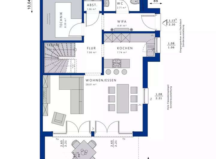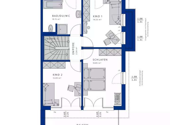 Dieses Angebot wurde in der Ausbaustufe "Schlüsselfertig" berechnet. Ohne Keller und Sonderausstattung (wie Erker, Balkone oder Garagen). Die Grundrisse können teilweise nach Wunsch angepasst werden.