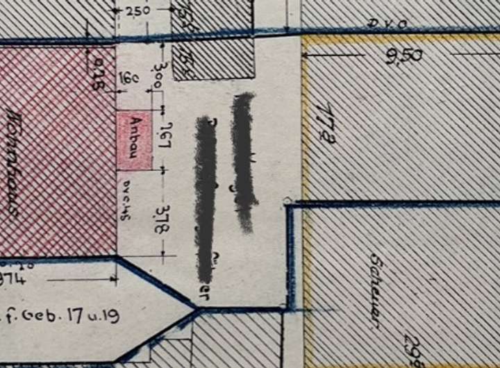 Der Neubau sollte als Anbau im hinteren Bereich des Grundstückes erfolgen.