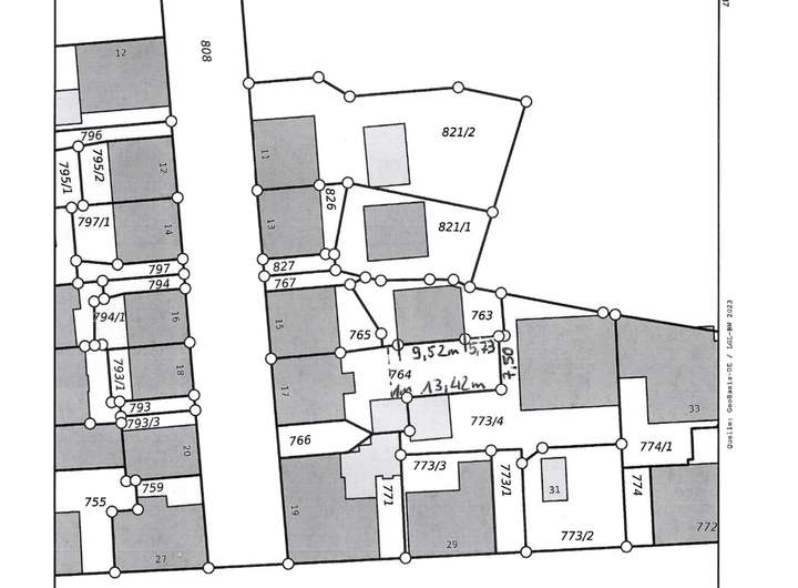 Das Grundstück hat eine Fläche von 130qm. Die Teilung fand noch nicht statt.