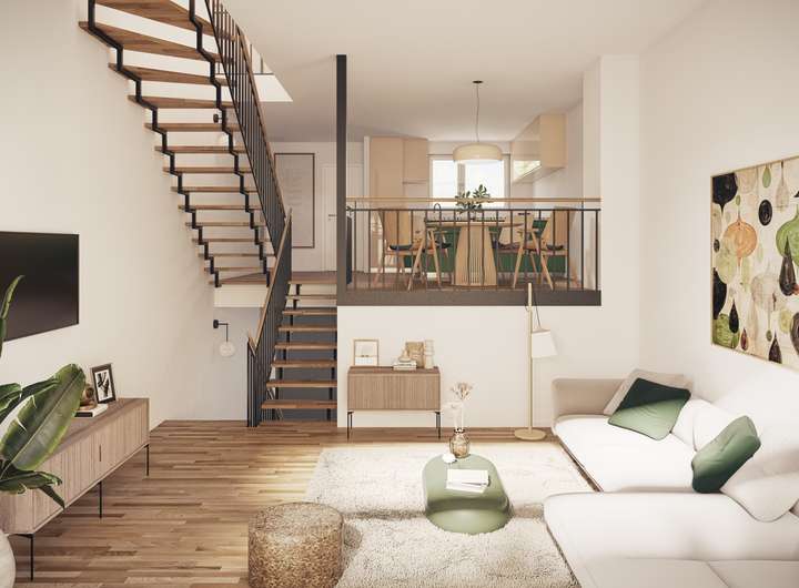 Zentral in Asperg entsteht das kleine und feine Wohnquartier „das Lehen“ mit 4 modernen Reihenhäusern und 34 charmanten Eigentumswohnungen. Vom ersten Blick an bezaubert das Quartier mit seiner klaren und modernen Architektur. Die zeitgemäßen und familienfreundlichen Reihenhäuser mit 5 Zimmern und einer Wohnfläche von ca. 150 m² entstehen auf 3 Etagen. Das Splitlevel-System (versetzte Ebenen) ist ein echtes Highlight und bewirkt eine besonders effiziente Raumnutzung und ein großzügiges Raumgefühl. Alle Häuser sind sehr praktisch, funktional und mit reizvollen Details versehen. Elektrische Rollläden an allen Fenstern sorgen für genügend Schatten und Privatsphäre. Ein Echtholzparkett wird in den Wohn- und Schlafräumen sowie Fluren verlegt. Die große Auswahl an attraktiven Bodenfliesen und eine wärmende Fußbodenheizung unterstreichen den Komfort. Das Bad mit Wanne und Dusche ist mit hochwertigen Sanitärgegenständen von namhaften Markenherstellern ausgestattet. Eine Garage sowie ein Stellplatz im Freien krönen Ihr Zuhause. Und: Sie erwerben Ihr Haus schlüsselfertig und inklusive Grundstück (reale Teilung). Die 1- und 4-Zimmer-Wohnungen mit ca. 32 m² bis ca. 120 m² besitzen alle ihren ganz eigenen Charme. Ganz gleich welche Etage Sie bevorzugen – gemütlich mit Terrasse und Garten im Erdgeschoss, hell, freundlich mit Balkon im Obergeschoss oder doch die elegante Dachgeschosswohnung mit großer Dachterrasse – für Ihre Wohnbedürfnisse ist etwas Passendes dabei. Alle Wohnungen sind funktional geschnitten und mit einer Fußbodenheizung sowie qualitätsvollem Echtholzparkett in den Wohn- und Schlafräumen ausgestattet. Eine großzügige Verglasung und bodentiefe Fenster bringen sowohl Licht, als auch Weite und Großzügigkeit. Die Bäder mit hochwertigen Sanitärobjekten von namhaften Markenherstellern werden zusätzlich mit einem Handtuchheizkörper versehen. Bequem gelangen Sie mit dem Aufzug von der Tiefgarage bis in Ihre gewünschte Etage. So lassen sich z.B. Einkäufe einfach und leicht transportieren. Ein Abstellraum im Untergeschoss ist Ihnen sicher, auch ein Wasch- und Trockenraum sowie ein geräumiger Fahrradabstellplatz. Die Energieversorgung des ganzen Quartiers erfolgt umweltschonend durch eine Nahwärmeversorgung über bivalente Wärmeerzeugungsanlage, bestehend aus einer Pelletheizung kombiniert mit Gas-Brennwertkessel – der Umwelt zuliebe. Die Lage des Wohnquartiers ist perfekt. Sie wohnen zentral und dennoch ruhig. Und die Nähe zum Bahnhof rundet „Das Lehen“ ab. Weiterhin bringt der Stadtkern viel Komfort: Geschäfte, Ärzte, Apotheke, Banken, Cafés, Kindergarten und Schulen erreichen Sie im Nu.