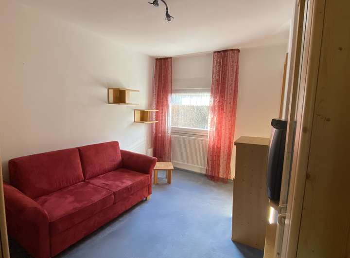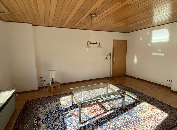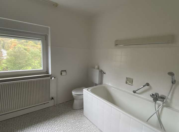 Das Tageslichtbad mit Wanne und Dusche wurde modernisiert. Vom oberen Wohnzimmer gelangen Sie auf den kleinen Balkon mit unverbaubarem Blick ins Grüne. Genügend Abstellmöglichkeiten bieten Keller und unausgebauter Speicher.
