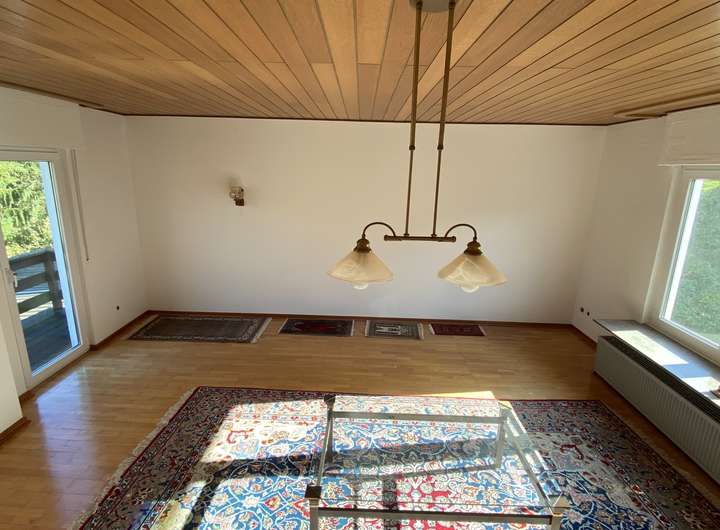 Parkett, neue Brennwerttherme, Glasfaserkabelanschluß im Haus vorhanden, große Terrasse mit Teich (nicht in der Wohnflächenberechnung enthalten)