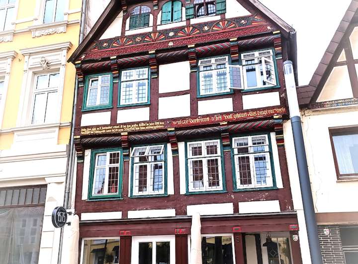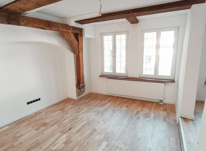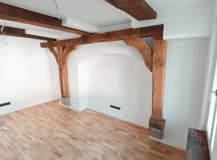 Das Haus befindet sich in attraktiver Innenstadtlage in Herford, direkt am Neuen Markt. Das denkmalgeschützte Gebäude von 1575 verleiht den Wohnungen auch im Innenraum einen besonderen Charme. So wurden beispielsweise die alten Deckenbalken aus Eiche aufwendig freigelegt, die als Gestaltungselement sichtbar sind.