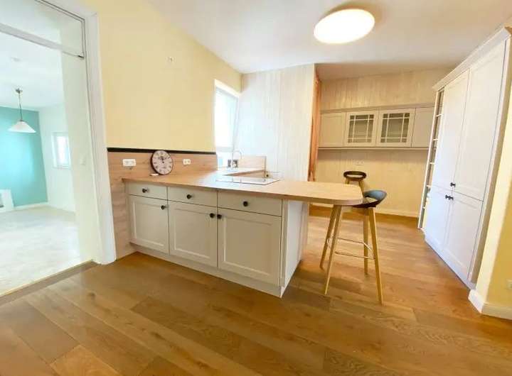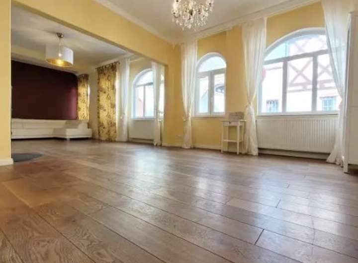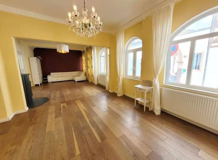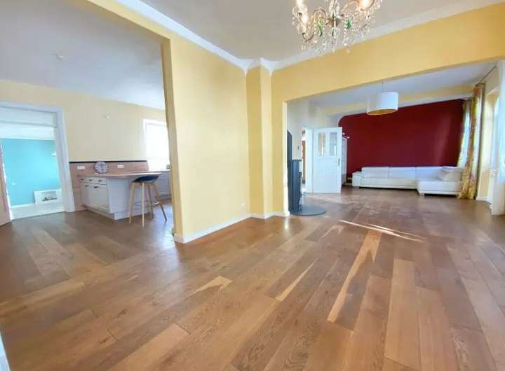 Die Hauptebene im Erdgeschoss hat nicht nur einen repräsentativen Salon mit Kronleuchtern, sondern auch einen Anbau im Stil eines Lofts mit Zugang zu einer schönen West-Terrasse und einem ruhigen gepflegten und umzäunten Garten.