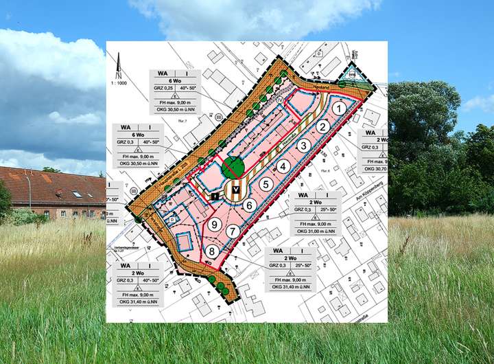 Die Erschließung der Grundstücke ist abgeschlossen und mit der individuellen Bebauung ist bereits begonnen worden.