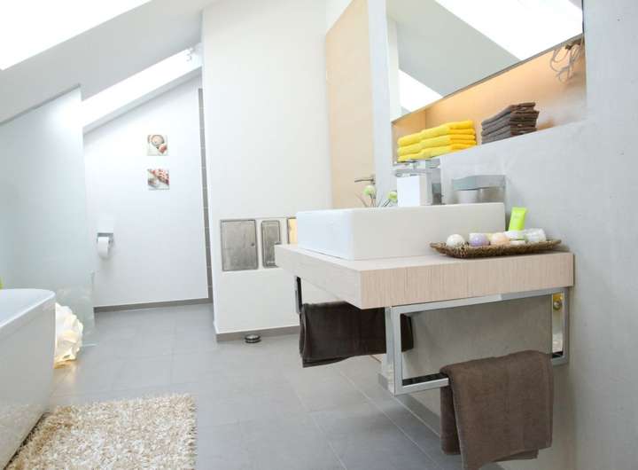 Das zweistöckige Haus verfügt über insgesamt 4 Schlafzimmer, ein Badezimmer sowie ein zusätzliches Gäste-WC. Dank des KFW55 Standards entspricht der Energietyp den neuesten Anforderungen an Nachhaltigkeit und Energieeffizienz.