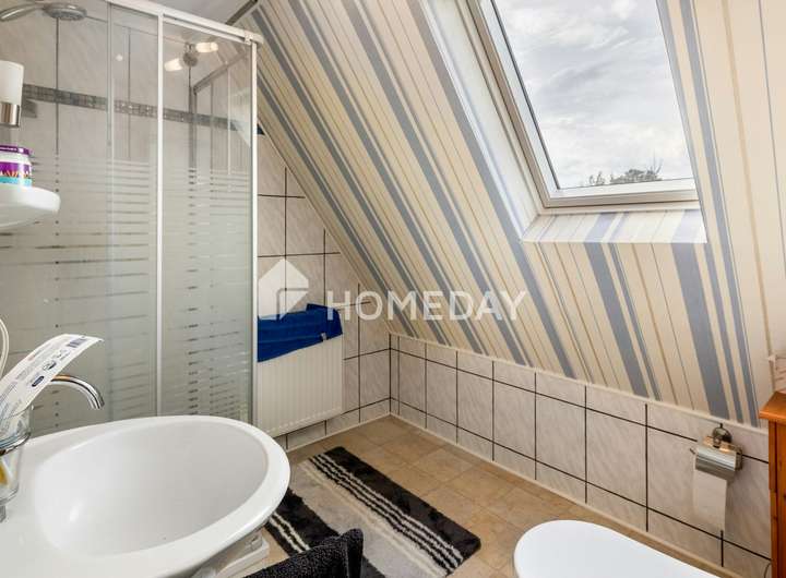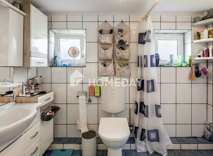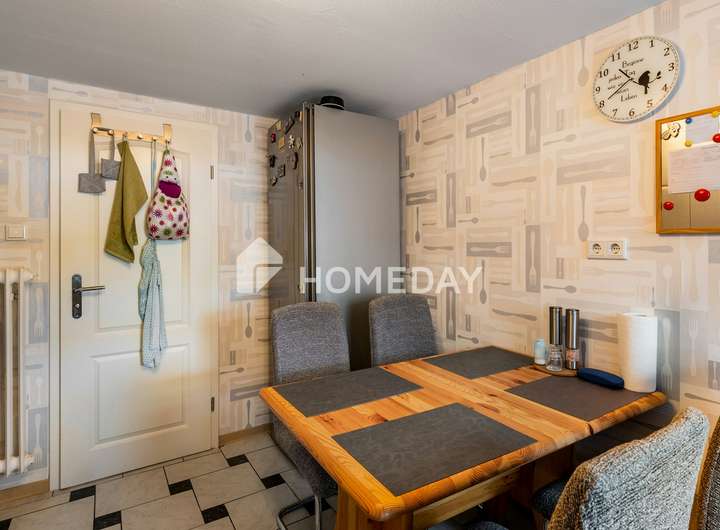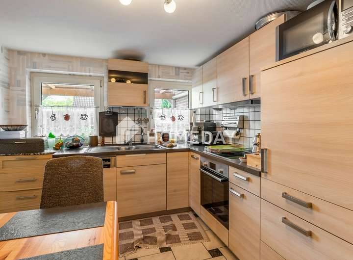 Die Innenausstattung des Hauses ist von solider Qualität. Besonders erwähnenswert sind die voll ausgestattete Einbauküche mit funktionellen Elektrogeräten sowie die beiden Tageslichtbäder mit Duschen. Im Erdgeschoss befindet sich zusätzlich ein Gäste-WC mit Fenster. Die großzügige Küche im Dachgeschoss bietet vielfältige Möglichkeiten zur individuellen Nutzung oder Gestaltung.