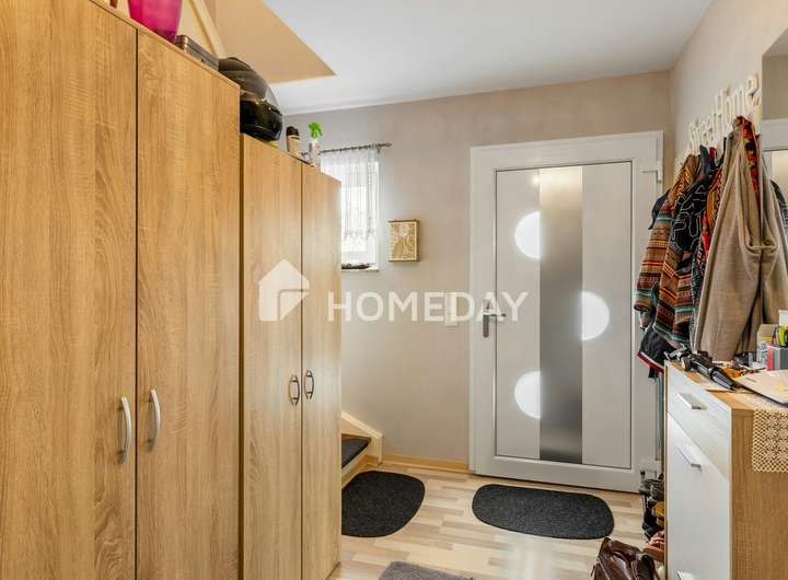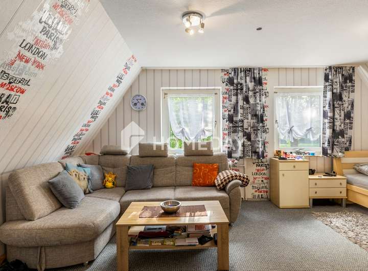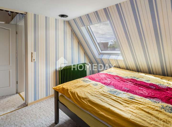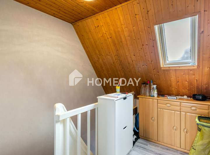 Die Wohnfläche erstreckt sich über großzügige 150 Quadratmeter und verteilt sich auf fünf wohnliche Zimmer, die geschickt auf das Erdgeschoss und das Dachgeschoss verteilt sind. Zusätzlich steht im Erdgeschoss eine praktische Waschküche zur Verfügung.