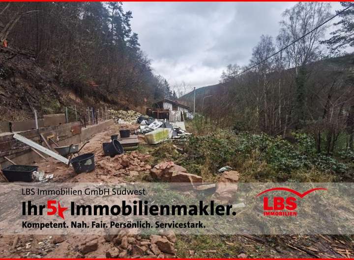Das Gesamtgrundstück hat eine Fläche von 6068 m² und besteht aus zwei unterschiedlich großen Flurstücken. Es ist größtenteils mit Kiefern und anderen Baumarten bestockt und hat eine unbefestigte Zufahrt von der Talstraße L520. Ca. 2 Meter oberhalb des Hangfußes ist der Baugrund planiert und zum Hang hin durch eine Stützmauer abgegrenzt. Ein Stromkabelmast steht bereits auf dem Grundstück, das mit Wasser- und Abwasserleitungen von der Talstraße aus einfach zu erschließen ist.