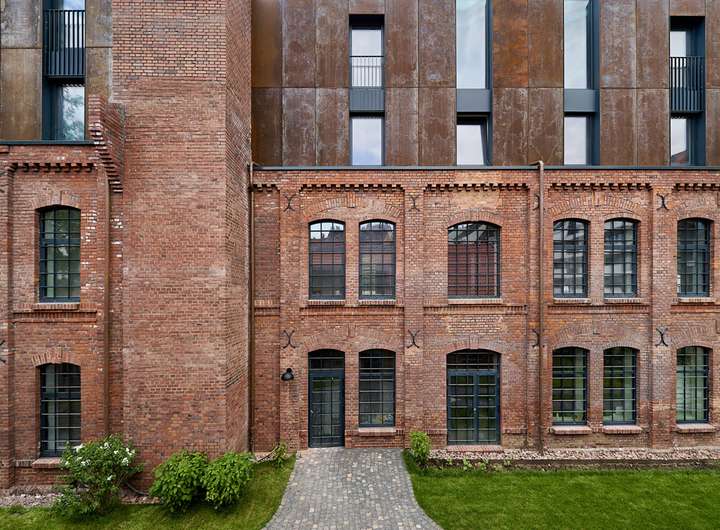Durch die Reduktion von Materialien und Farben wird eine spannungsvolle Balance zwischen historischem Charme und moderner Architektur erreicht. Beeindruckende Stilelemente wie historisch erhaltene Backsteinwände, Glas-Lofttüren und hochwertige Böden machen jedes Loft zu einem besonderen Zuhause. Das Gebäude ist im Hinblick auf die Energieeffizienz auf dem neuesten Stand und erreicht die KFW 100 Norm.