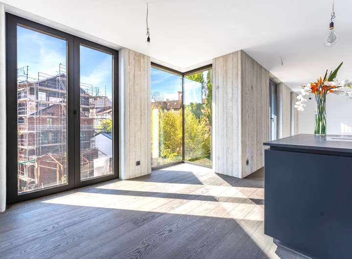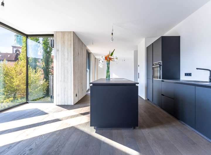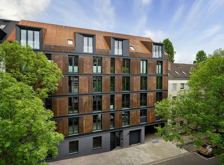 Luxuriöses und nachhaltiges Wohnen sind im Neubau vereint, der sich durch seinen progressiv urbanen Look und moderne Materialien auszeichnet.