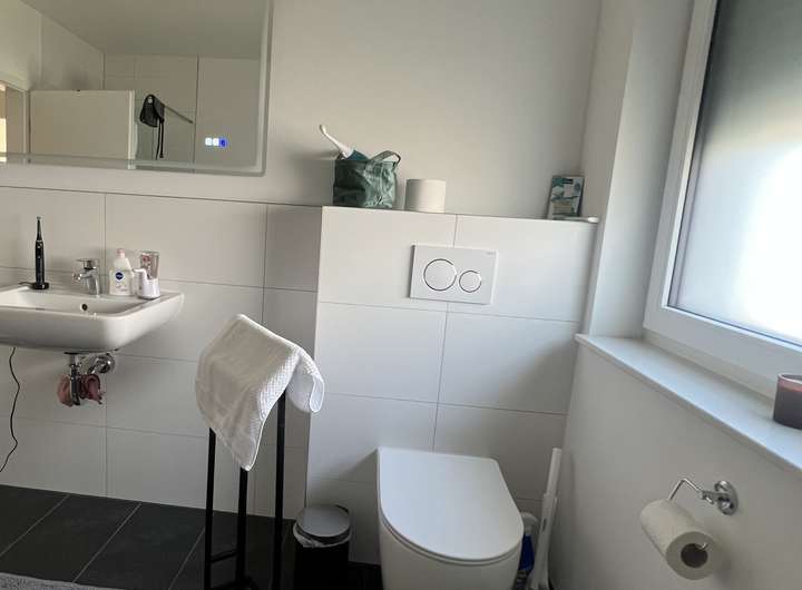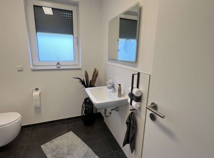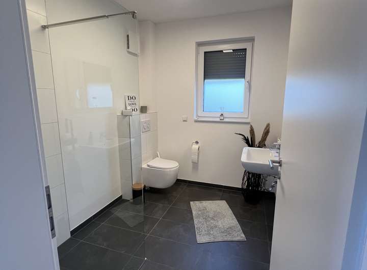 Das Objekt, um das es sich hier handelt, besticht durch eine gehobene Innenausstattung. Es verfügt über eine Fußbodenheizung, Designbeläge aus Vynil, einer ebenerdigen Dusche sowie elektrische Rollläden. Gleichzeitig verfügt es über eine dezentrale Lüftungsanlage. Zum 01.01.2026 können Sie die freundliche, neuwertige, zweiundhalbgeschossige Doppelhaushälfte beziehen. Ein Badezimmer und ein separates Gäste-WC zählen neben fünf attraktiven Zimmern zu dem Haus. Die Immobilie ist außerdem barrierefrei zugängig. Durch die Auto-Stellplätze, die sich direkt am Objekt befinden, können Sie Ihre Wocheneinkäufe entspannt nach Hause tragen. Ein Stellplatz ist zusätzlich mit einer Wallbox ausgestattet. Das Haus verfügt über eine Terrasse und ist rundherum begrünt. Durch den KFW40 Standard sind die Nebenkosten auf ein Minimum reduziert.