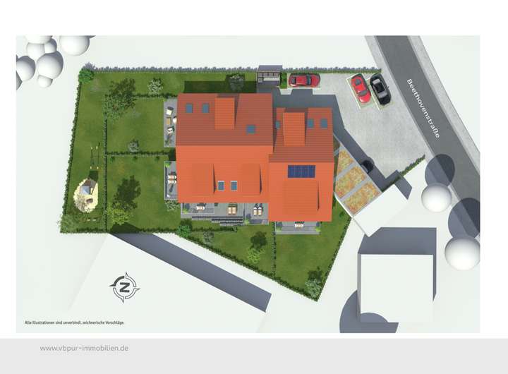 Angaben und Haftungsvorbehalt: Alle Angaben in diesem Exposé wurden mit großer Sorgfalt zusammengestellt und auf ihre Korrektheit überprüft. Eine Haftung für Irrtümer (z. B. bei Flächen- / Maßangaben) wird dennoch ausgeschlossen. Im Exposé enthaltene Illustrationen und Fotos sind teilweise als Vorschläge, Entwürfe und Muster zu verstehen und nicht als wesentliche Elemente im Sinne der Baubeschreibung. Sie repräsentieren den Planungsstand zum Zeitpunkt der Drucklegung. Grundrissillustrationen können z. B. Sonderausstattungen enthalten. Maßgebend für Erwerber ist die Baubeschreibung sowie die Objektbeschreibung in der Teilungserklärung.