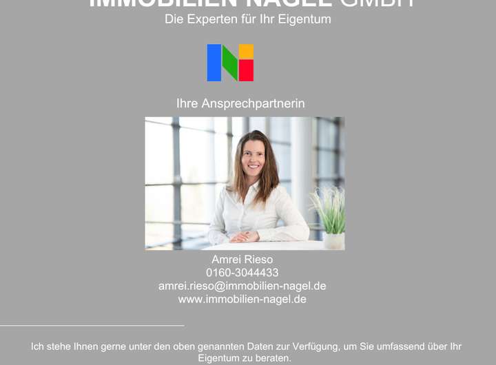 Die Käuferprovision beträgt 3,57% inkl. Mehrwertsteuer und ist vom Käufer auf den notariell beglaubigten Kaufpreis an die Immobilien Nagel GmbH zu zahlen.
