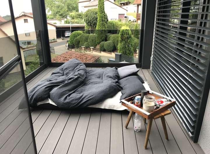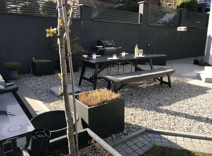 Es gibt eine große private Terrasse die direkt von der Küche zugänglich ist.