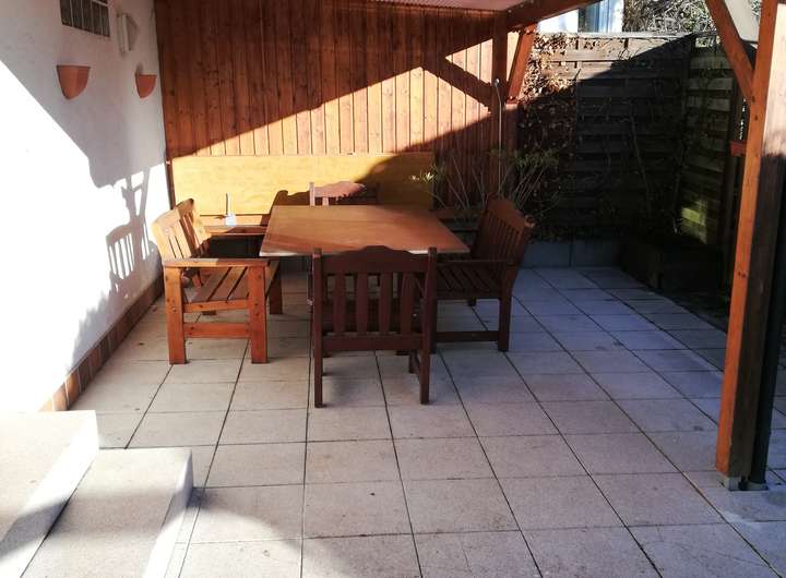 • Überdachte Sitzecke für gemütliche Grillabende mit Familie und Freunden