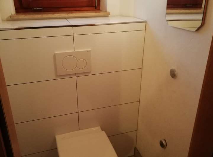 Kachelofen, Parkettböden EG, Laminat OG, Einbauküche, großer Balkon, überdachter, großer Sitzbereich im Freien, Gartenhütte, separater Zugang zum Keller