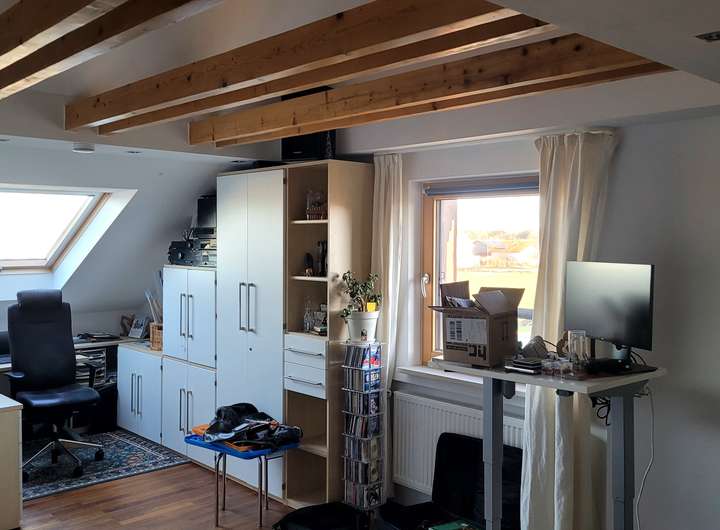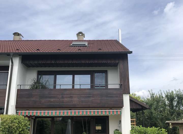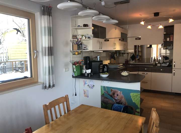 Bei dieser Immobilie handelt es sich um eine zweistöckige, modernisierte Doppelhaushälfte. Das Objekt verfügt über eine gute Innenausstattung, einen Südbalkon, große Südterasse, sowie einen gemütlichen Kachelofen und eine Mini PV-Anlage. Die Immobilie ist vollständig gedämmt und hat 3-fach verglaste Fenster. Dadurch sind die Heiz- und Warmwasseraufbereitungskosten niedrig. Die Immobilie kann zum 01.04.2026 bezogen werden. Ein aktueller Energieausweis liegt vor. Das Haus verfügt über ein großzügig ausgebautes Dachgeschoß, eine gemütliche Wohnküche mit viel Licht und schönem Blick auf das freie Feld. Die vorhandene Einbauküche ist mit Miele Geräten (Geschirrspüler, Induktionsherd, Backrohr, Kühlschrank und Dunstabzugshaube) ausgestattet und bietet viel Platz. Neben den fünf Zimmern befinden sich ein Vorratsraum, zwei Badezimmer und ein Gäste WC im Haus. Eine Garage für Ihr Auto, zwei geräumige Gartenhäuser und ein schöner Garten mit Spielfläche und Obstbäumen stehen Ihnen zur Verfügung. Im Keller befindet sich ein Waschraum mit Dusche, ein Vorratsraum und ein großzügiger Hobbyraum. Geheizt wird das im Jahr 1969 gebaute und in 2011, 2014 und 2018 modernisierte und erweiterte Objekt mit einer Öl-Heizung. Die monatliche Warmmiete für die Immobilie mit Grundstück beträgt 2.340 Euro.