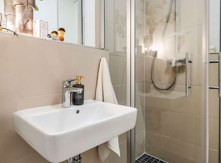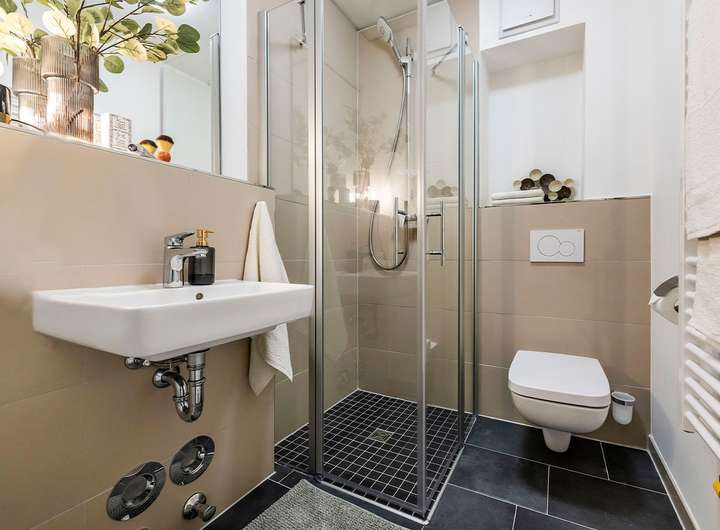 • gemeinsames modernes Bad mit bodengleicher Dusche