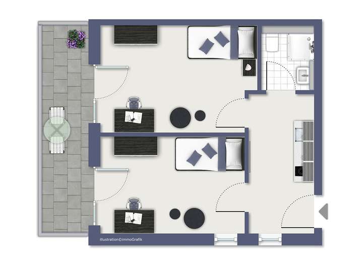 164 Study-Apartments sind konzipiert als Einzelapartment oder 2er-WG und richten sich ausschließlich an Studenten bzw. Personen in einem Ausbildungsverhältnis.