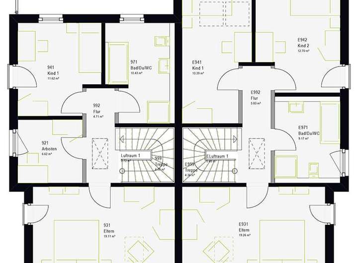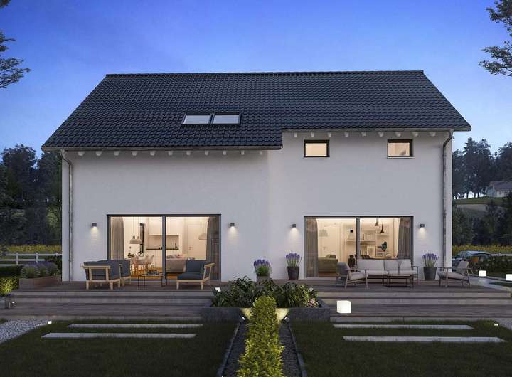 Fantastisch, was unser Mehrgenerationenhaus FamilyStyle 24.01 S an Wohnfläche bietet: Hier werden gleich zwei Familien glücklich! Und das auf zwei Ebenen: Das Erdgeschoss wird mit Küche, Wohn- und Esszimmer zum jeweiligen Lebensmittelpunkt der Bewohner, während das Obergeschoss den Privaträumen und ihrer kreativen Ausgestaltung vorbehalten bleibt.