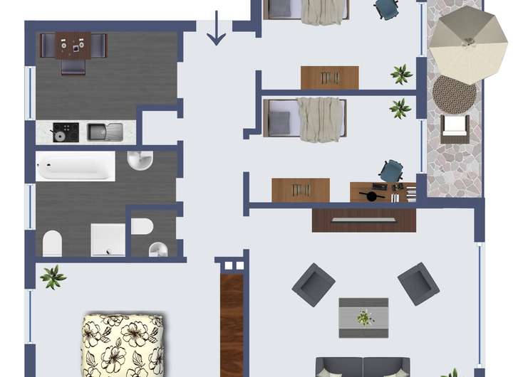 Die Wohnung verfügt über 4,5 Zimmer, darunter 3 Schlafzimmer, die ausreichend Platz für eine Familie oder auch für Paare bieten.