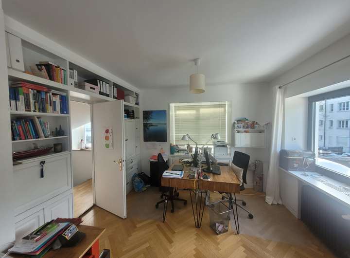 Arbeitszimmer/Wohnzimmer/Bibliothek, ein sehr großes Bad mit Dusche und Badewanne, separatem WC und Schlafzimmer (mit Klavier).