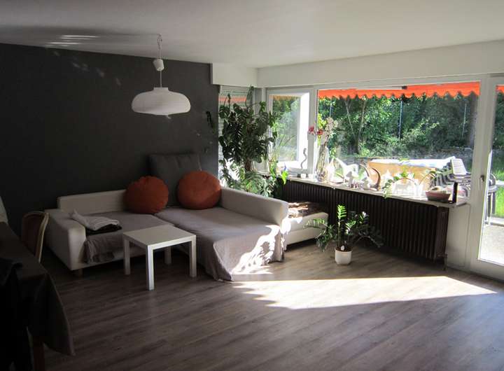 - Wohn- und Esszimmer mit Zugang zur Terrasse und zum Garten