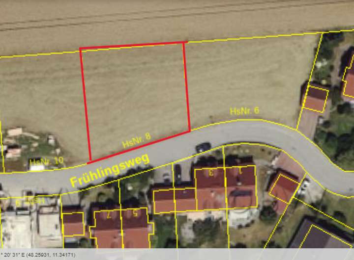 Es ist Teil des Bebauungsplanes Nr. 53 Am Frühlingsweg Nr. BL 910005 der Gemeinde Bergkirchen und kann mit einem großzügigen Einfamilienhaus / Zweifamilienhaus (E + D, Baugrundfläche 13 m * 10 m) bebaut werden.