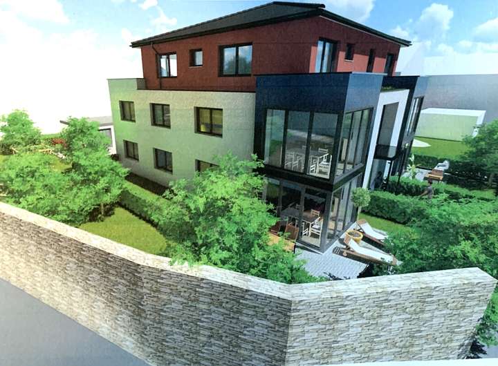 Baugrundstück für ein Mehrfamilienhaus mit Baugenehmigung für 5 Wohnungen mit Terrassen und Balkonen, 3 Garagen- und 2 Außenstellplätzen in guter Lage von Recklinghausen für sofortige Bebauung.
