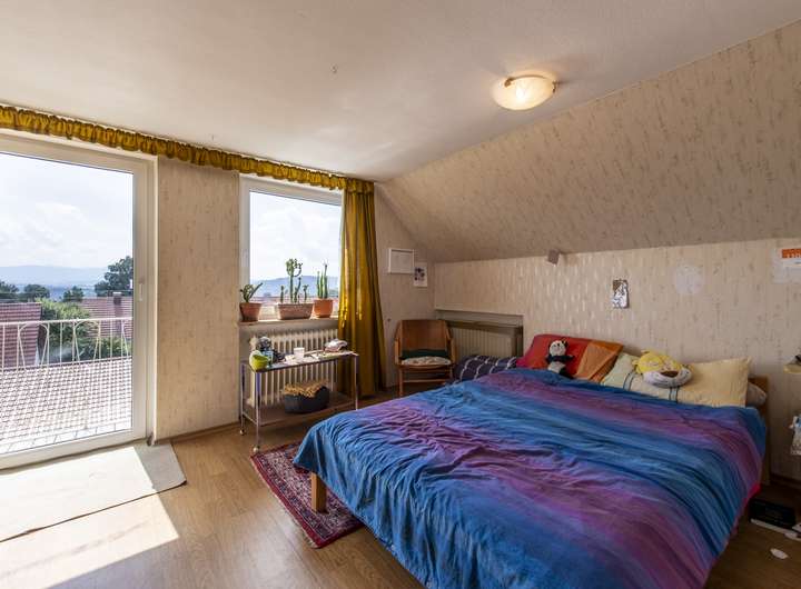 Im Dachgeschoss sind weitere 2 Wohn- oder Schlafräume und ein zusätzliches WC untergebracht. Hier besteht auch die Möglichkeit den wundervollen Bergblick auf dem Balkon zu genießen. Außerdem kann die Kammer als Gästezimmer, Büro oder Abstellraum genutzt werden.