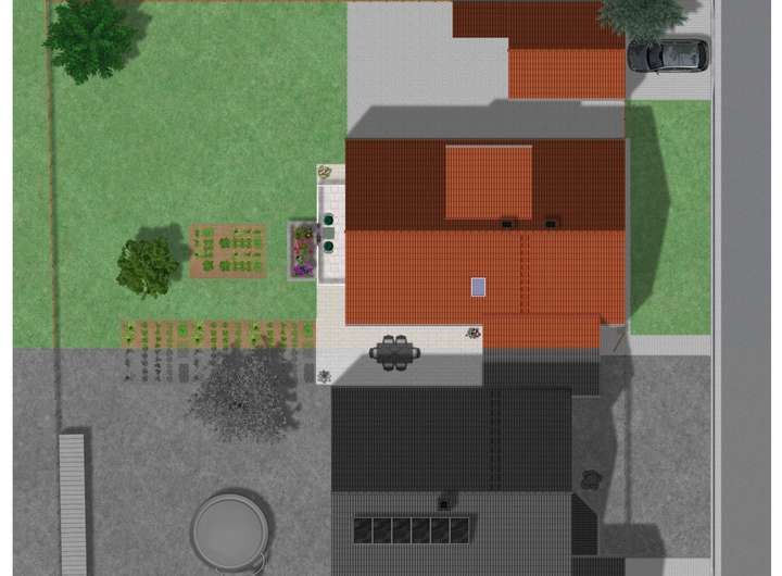 Aktuell befindet sich das Haus auf einem gemeinsamen Grundstück mit dem angrenzenden Einfamilienhaus. Bei Verkauf wird das Grundstück geteilt und dem angebotenen Haus eine Fläche von ca. 390 m² zugeschlagen. Der vorhandene Zugang wird gemeinsam mit dem Einfamilienhaus genutzt und unterhalten.
