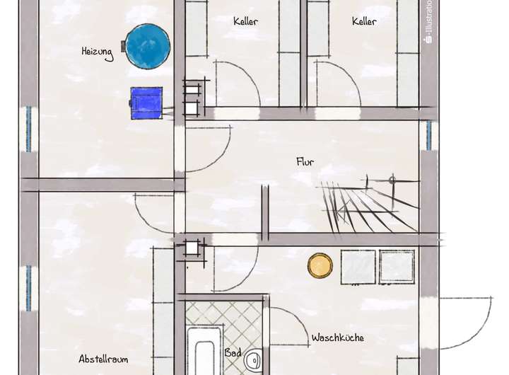 Das Untergeschoss wurde ca. 2000 erweitert und optimiert und dient als große Stauräume für die vielen Gartengeräte, die Heizungsanlage, eine Waschküche und alles was sonst noch Platz finden muss.