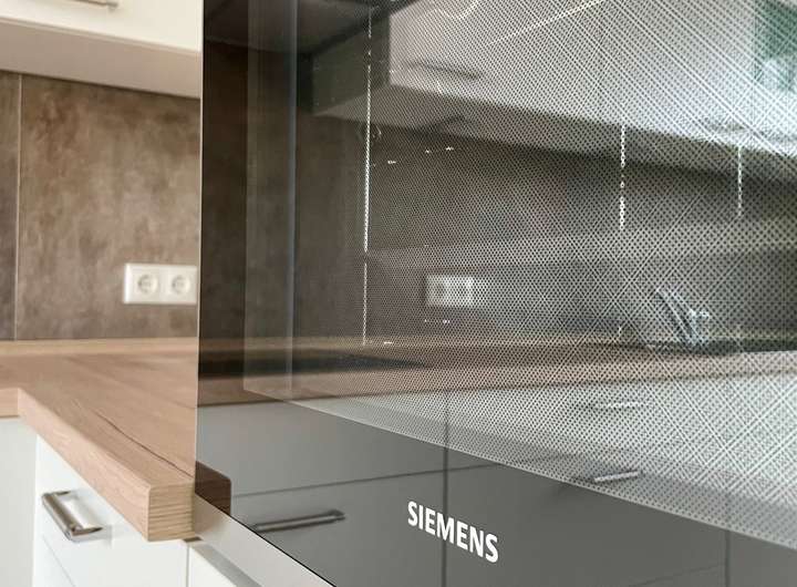 - Wohnküche mit integrierter Einbauküche und Siemens Markengeräte