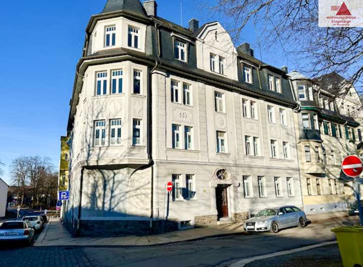 In der oberen Stadt, nahe des „Pöhlberg“, wartet ein liebevoll saniertes Kleinod im Jugendstil auf seine neuen Bewohner. Das Haus befindet sich auf der Schillerstr. 10, ganz in der Nähe des Schutzteiches. Einkaufsmöglichkeiten, Banken, Schulen und das reizvolle Waldgebiet des Pöhlberg sind nur wenige „Gehminuten“ entfernt. Ausreichend öffentliche & kostenfreie PKW-Stellplätze sind in unmittelbarer Umgebung (Kätplatz, Sportplatz, Seitenstraßen) vorhanden.