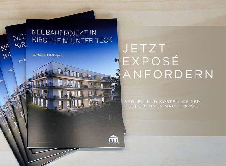 Fordern Sie noch heute ein detailliertes gedrucktes Exposé per Post an - natürlich kostenlos und unverbindlich. Darin finden Sie detaillierte Informationen zum Neubauprojekt Faberweg 14 in Kirchheim Teck.