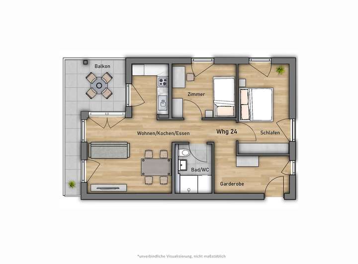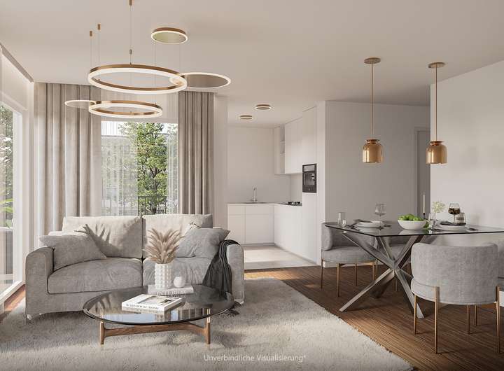 Ihre persönliche Wohnung zeichnet sich durch einen offen gestalteten Wohn- und Essbereich aus. Sie wird durch die bodentiefen Fenster und die angrenzende Terrasse oder Balkon nach außen erweitert. So entsteht ein angenehmes Raumgefühl.
