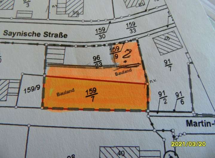An dieser oben am Hang gelegenen Straßenfront, misst das Grundstück eine ungefähre Breite von ca. 40m.