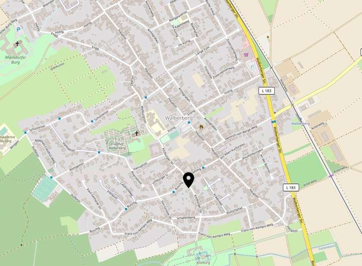 Das Grundstück liegt in zentraler Lage in Bornheim-Walberberg. Der Ortsteil Walberberg bietet eine sehr gute Infrastruktur. In wenigen Minuten sind fußläufig Supermarkt (Edeka), Geldautomat, Apotheke, Bäcker, Schreibwarengeschäft mit Post, Gaststätte und einige Ärzte erreichbar.