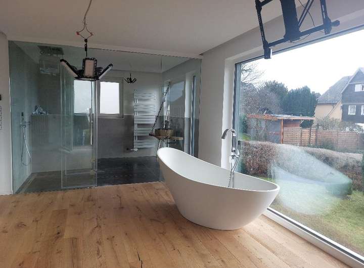 2 TGL-Bäder, 2 Dielen, 2 Terrassen.
