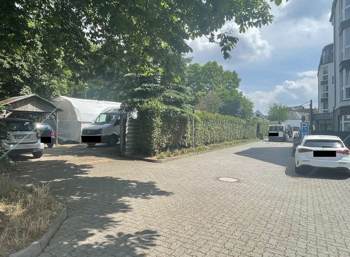 Zur Schaffung von Zufahrten und Stellplätzen lassen sich nach GRZ 2 zusätzlich ca. 300qm versiegeln. Großer Vorteil: die kleine Straße linksseitig der Hausnummer 3 ist per B-Plan explizit mit einem Fahrtrecht zugunsten der Anlieger belegt. Zufahrt und Stellplätze können somit im rückwärtigen Grundstücksteil hergestellt werden, ohne die geschlossene Bauweise mit einer Durchfahrt unterbrechen zu müssen.